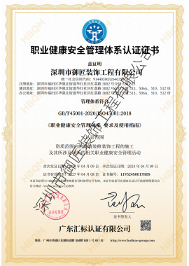 • 職業健康安全管理體系認證證書